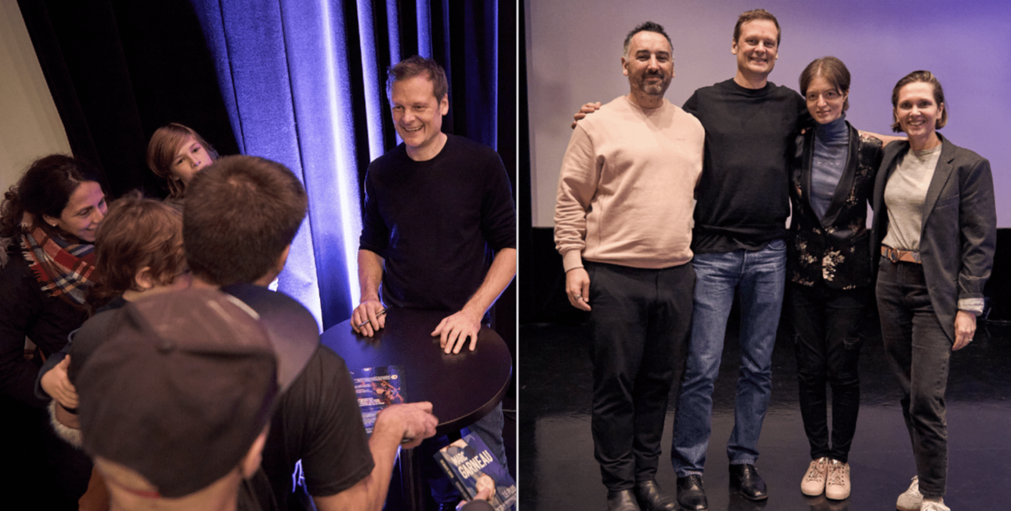 Christophe Galfard pendant la séance de dédicaces, accompagné d’Olivier Moreira (Éditions Michel Lafon), Chloé-Anne Touma (CScience et LES CONNECTEURS), et Soizig Le Foll (Éditions Michel Lafon). (Crédit Photo : Michael Comte)