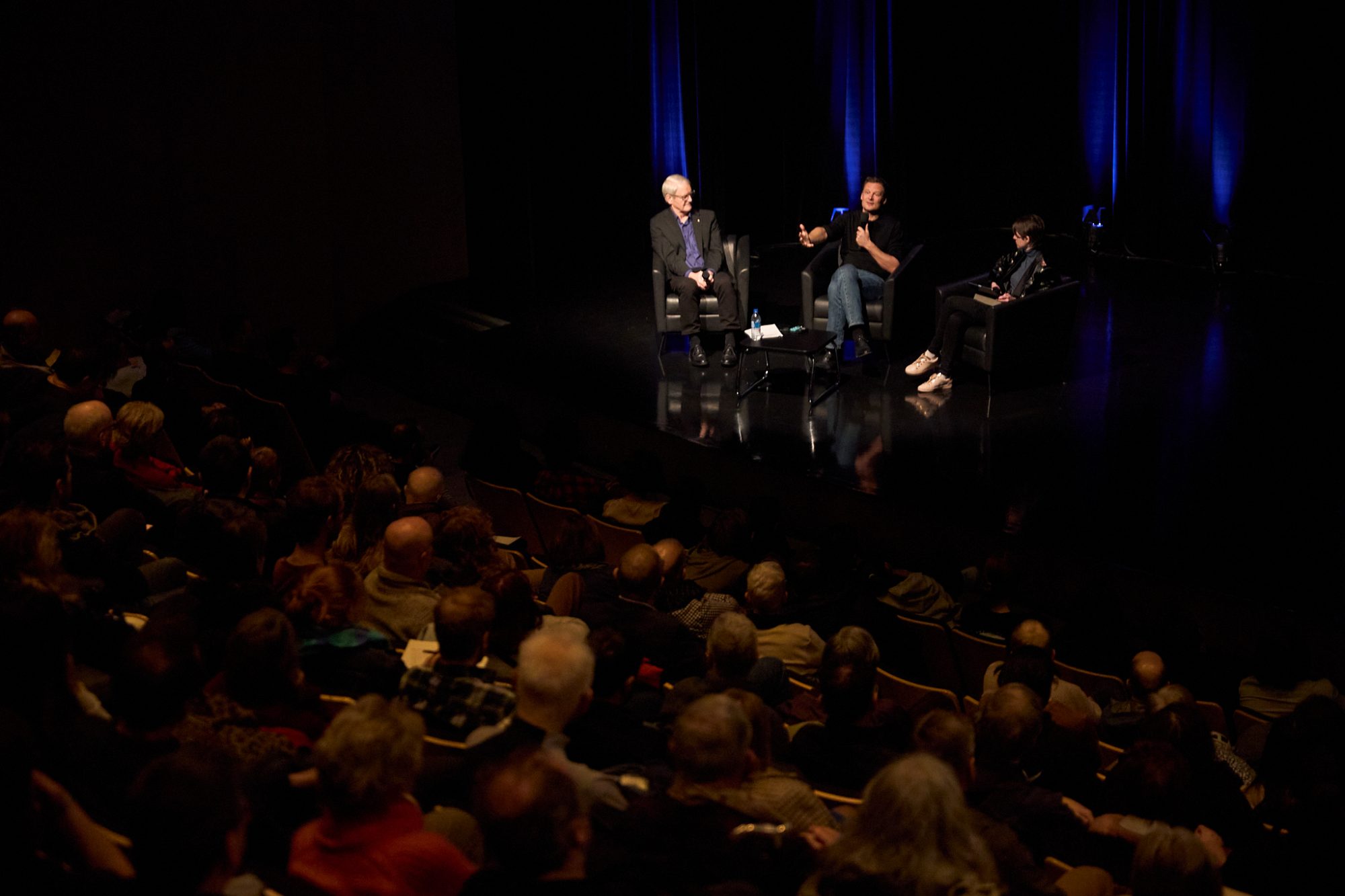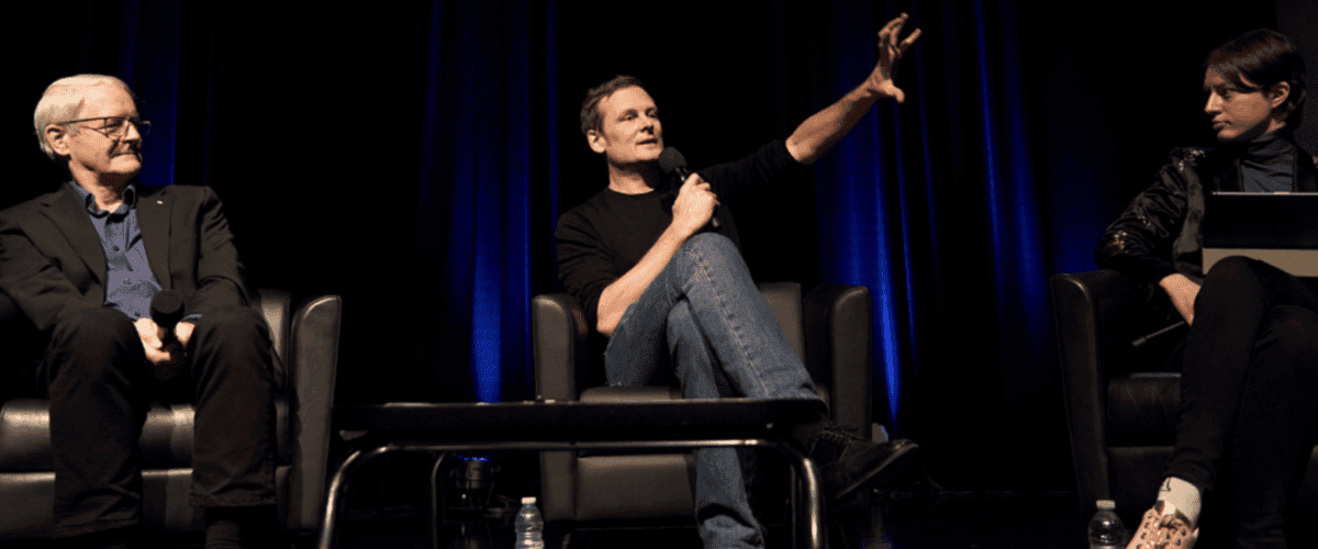 Le panel composé de Marc Garneau, Christophe Galfard et Chloé-Anne Touma. (Crédit photo : Michael Comte)
