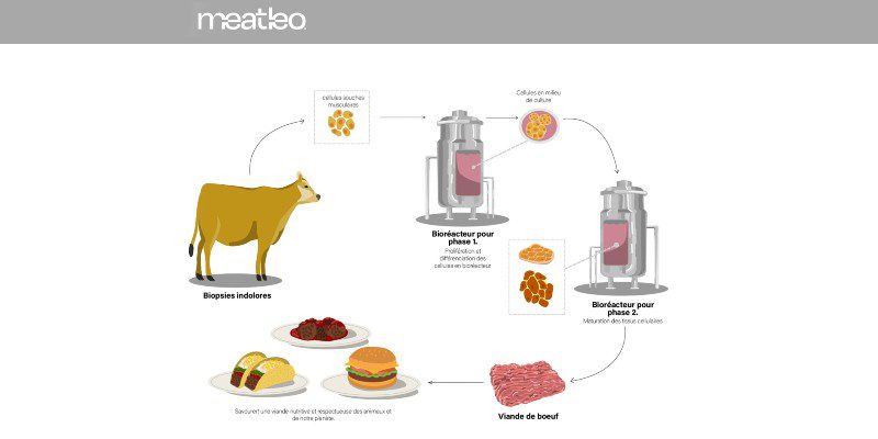Pensons aussi aux avancées de Mealtleo en matière de culture de viande in vitro, consistant à réaliser des biopsies indolores, suivies de la culture des cellules à l’aide de techniques avancées d’ingénierie tissulaire. Les cellules sont reproduites in vitro, indépendamment de l’animal, en répliquant biologiquement le processus naturel propre à l’organisme afin de recréer les mêmes propriétés organoleptiques que la viande, avec la possibilité supplémentaire d’améliorer les valeurs nutritionnelles. « La production de notre viande se fera à l’intérieur de grands bioréacteurs, selon une méthode industrielle similaire à la fermentation de la bière et du yogourt », soutient l’entreprise.