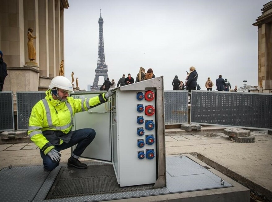 Pour connecter certains sites temporaires des Jeux, comme la place de la Concorde et la place du Trocadéro, le Comité International Olympique aura recours aux bornes électriques événementielles rétractables d’Enedis, qui seront installées sous la chaussée, permettant des branchements « temporaires, rapides et de forte puissance ». L’objectif : réduire de 90% les émissions de CO2 générés lors de l’événement, en limitant l’utilisation des groupes électrogènes.