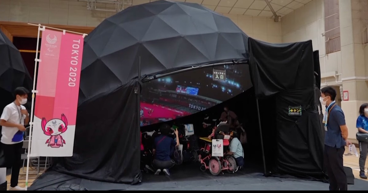 Au chapitre des initiatives alliant innovation technologique et inclusion des personnes ayant un handicap, et pour lesquelles l’enjeu du manque de mobilité est un facteur d’exclusion des JO, pensons au Jeux de Tokyo en 2020, lors desquels une grande installation aux allures de dôme, soutenue par des technologies immersives recréant les perspectives des stades, a accueilli des enfants handicapés de Tokyo pour leur permettre d’interagir avec les athlètes à travers une caméra, de danser avec une mascotte robotique, et de regarder les matchs à l’intérieur, comme s’ils étaient dans les gradins, grâce à la réalité virtuelle.